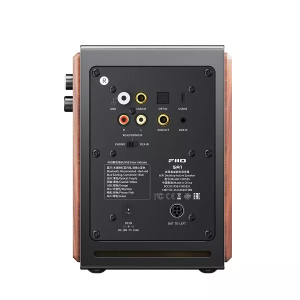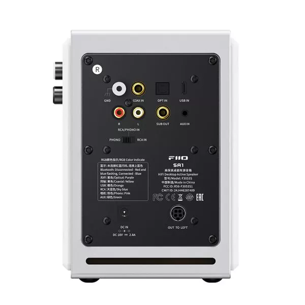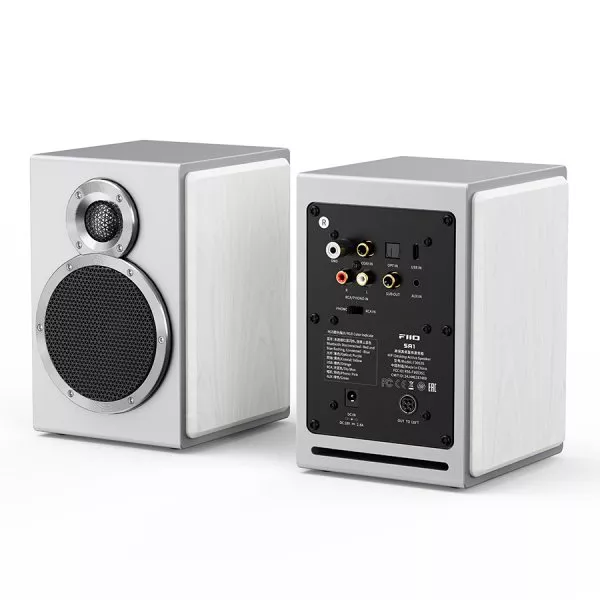 | 31-band high-precision lossless PEQ The SA1, unlike most similar products, supports a 31-band high-precision lossless PEQ that can be used in all input modes. Through the FIIO Control app, you can fine-tune and calibrate the frequency response curve. For problems such as non-flat frequency response curves caused by complex room reverberation and standing waves, you can take control and optimize the sound thanks to the PEQ. *PEQ adjustment is currently only supported via the control app Variety of inputs and outputs The SA1 is a pair of active speakers with a wide variety of inputs and outputs when compared to similarly priced products. It includes RCA and 3.5mm analogue inputs; a built-in DSP; supports USB, coaxial, and optical digital inputs as well as high-res Bluetooth input. Particularly noteworthy of the SA1 is the built-in phono preamp, allowing even entry-level products to shine. The SA1 is also equipped with a subwoofer output, allowing the SA1 active speakers to fit perfectly within your home theatre setup. The SA1 covers most usage cases for listeners looking for a speaker within its price range. Supports LDAC high-res Bluetooth In addition to a variety of analogue and digital inputs, the SA1 also supports LDAC high-definition Bluetooth decoding and Bluetooth version 5.4, which allow for wireless high-bit-rate audio up to 990kbps for richer sound. Thanks to the high-resolution digital inputs and LDAC support, the SA1 is both Hi-Res Audio and Hi-Res Audio Wireless certified. *Bluetooth version: 5.4 Multiple built-in sound presets via the control app The SA1 comes with eight sound presets and allows you to save up to three custom PEQ setups, all of which can be adjusted through the FIIO Control app. In addition to the typical pop, jazz, classical, R&B, and dance sound presets, there is also a specially-tuned monitoring-style curve that compensates the frequency response curve to a flat line, allowing the SA1 to transform into active desktop studio monitor speakers. *For detailed instructions on PEQ setup, please refer to the SA1 quick start guide and the official FAQ. 3.5-inch wood fibre woofer – Compact yet powerful Although the SA1 is an entry-level product, its woofer is the same 3.5-inch size as that of the SP3/SP3 BT and is made of the same wooden fibre pulp manufacturing process as in FT1 wood headphones. The pure pulp fibre diaphragm is both lightweight and sturdy, and outputs rich sound. By adjusting the pulp material, ratio, and the proportion of long and short fibres, we made the diaphragm more rigid and fine-tuned the sound. The wooden fibre diaphragm has a thick and rich sound, with dense and lush vocals. Due to these advantages, it is no wonder that other well-known brands utilize this kind of driver in their speakers even now. Additionally, the 3.5-inch woofer is paired with a large 75mm flexible suspension, allowing that driver to achieve bass extension down to 65Hz. 3/4 inch aluminium-magnesium alloy dome tweeter The SA1 uses a monitor-grade aluminium-magnesium diaphragm dome tweeter that provides crisp, clear sound. It brings a uniquely enjoyable listening experience with plenty of detail. Acoustic design 2.0 – Active electronic two-way crossover The SA1 is designed to be a set of professional active speakers. The crossover point is set at 3.5 kHz, which best suits the characteristics of the drivers, power supply, and circuitry – maximizing the SA1’s sound quality. The SA1 employs a two-way second-order active filter circuit to enhance the flexibility and control precision of the crossover. This crossover design effectively isolates each driver’s signal from the others – leading to reduced intermodulation distortion, avoided driver overload, and significantly improved power efficiency. Built-in phono preamp The SA1 is equipped with a built-in phono preamp, designed with standard RIAA equalization in order to ensure faithful reproduction of sound from your vinyl records. When using a vinyl turntable without a built-in preamp (the vinyl turntable only has PHONO OUT), you can switch the SA1 to the PHONO setting to use the internal SA1 phono preamp. If the vinyl turntable already has a built-in preamp (such as the FIIO TT13), simply switch the input toggle to RCA IN. Subwoofer out – Instantly transform into a HiFi 2.1 system Due to popular demand, the SA1 has been equipped with an RCA subwoofer output. Use the SUB OUT connector to connect to an active subwoofer to form a 2.1 system for better bass performance, even in large rooms. MDF cabinet – A natural sound The SA1’s cabinet is made of high-density MDF with a thickness of up to 12mm. The top and sides of the cabinet adopt a 9mm thick imitation solid wood veneer, which can effectively reduce sound resonance for a purer and more natural sound. To simplify the frontal design of the SA1 looks more concise and to achieve better sound, the SA1 uses a rear guide tube design that allows for bass extension down to 65Hz, giving these compact speakers a big punch. Physical knobs For convenient operation Two large physical knobs, one of which is adorned with an RGB light indicator, and a large button on the right side of the main speaker make operating the SA1 faster and easier. Supports automatic standby and wake-up If the SA1 does not detect any input for 20 minutes, it will enter the standby state. When doing so, the RGB light indicator will turn red and will entirely turn off after 20 minutes of being in the standby state. When a signal input is detected, the device will automatically wake up and the RGB light indicator will return to the colour it was before entering the standby state. *The power saving mode is turned on by default and supports the automatic standby and wake-up functionality. The power saving mode can be turned off in the companion app, after which the device will no longer automatically go into the standby state. |